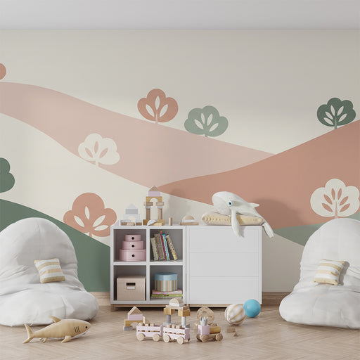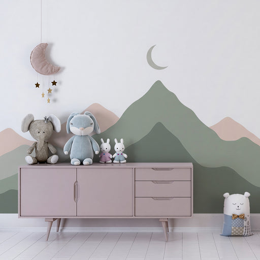KidsWallTransformér babyrommet til en ekte kjærlighetsrede med denne tapeten til barnerommet inspirert av beroligende landskap. Stiliserte fjell i myke grø...