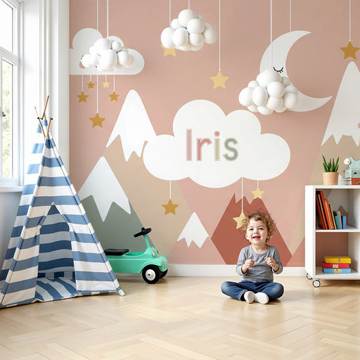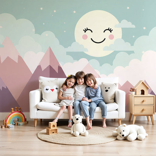 KidsWallTransformér barnerommet til en fortryllende verden med denne tapetet for barnerom som viser myke fjell og smilende skyer. Pastellfargene skaper en ...