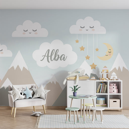 Vis alle detaljerTapet barnerom | Fjell og sovende skyer