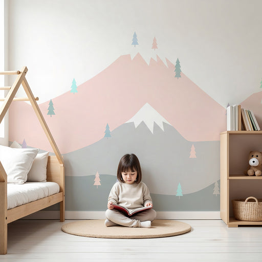 KidsWallRedesign barnerommet til en altfor søt plass med denne tapetet for barnerom i myke pastellfarger. Majestetiske fjell med snødekte topper står stolt...