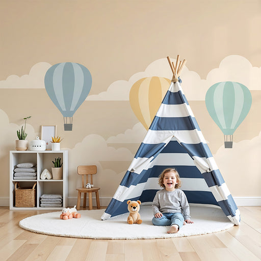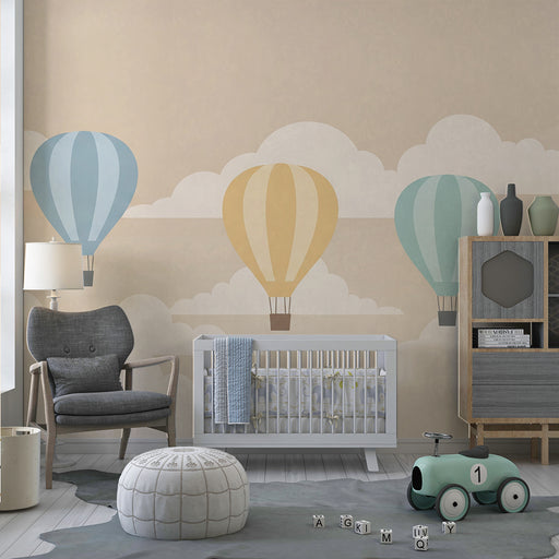 KidsWallEmbarquez pour un voyage aérien avec ce tapet for barnerom représentant des montgolfières délicates flottant dans un ciel apaisant. Les teintes dou...