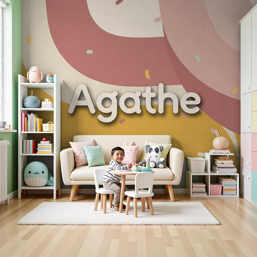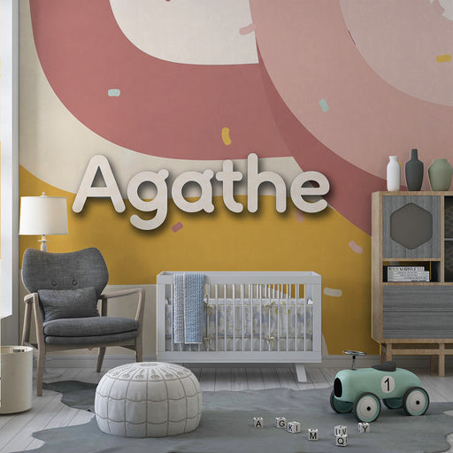 KidsWallTransformér barnerommet med denne tapetet for barnerom med abstrakte mønstre og beroligende farger. De flytende kurvene og pastellfargene, fra gul ...