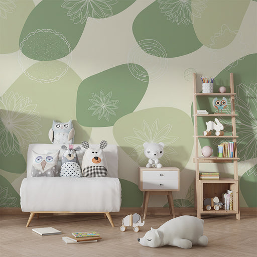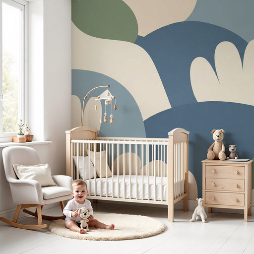 KidsWallRedesign barnerommet til ditt barn til et altfor søtt sted med denne barnerom tapet med abstrakte mønstre. De myke og avrundede formene i blå, grøn...