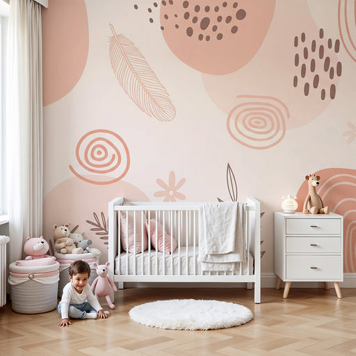 KidsWallTransformér barnerommet med denne barnerom tapet med abstrakte og beroligende mønstre. Organiske former i myke nyanser av rosa og beige skaper en v...