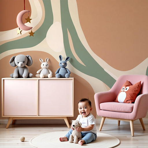 KidsWallTransformér babyrommet med denne tapetet for barn med organiske og beroligende mønstre. De flytende formene og de harmoniske fargene, fra terrakott...