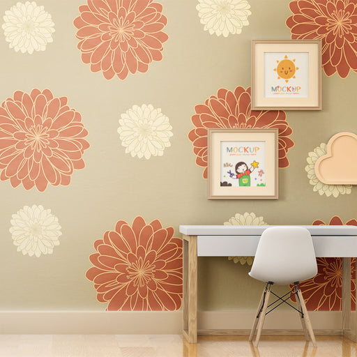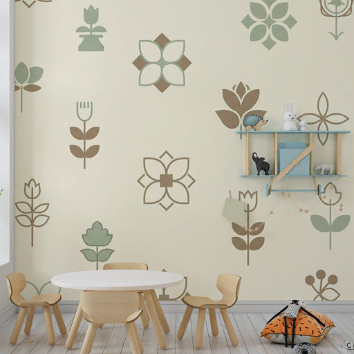 KidsWallRedesign barnerommet til en altfor søt plass med denne tapetet for barnerom med moderne blomstermotiver. Stiliserte blomster og geometriske former ...