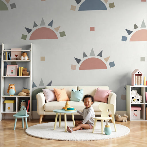 Vis alle detaljerTapet barnerom | Fargerike og geometriske solmotiver