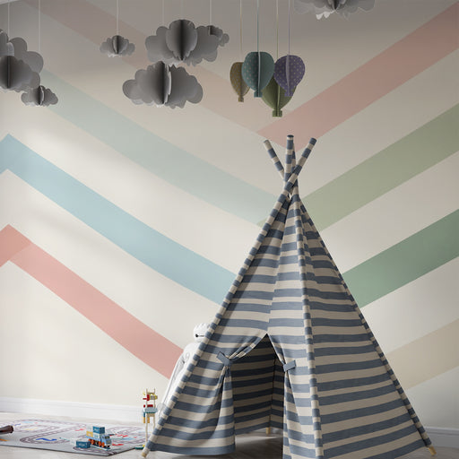 Vis alle detaljerTapet barnerom | Pastellfargede zigzag-motiver på myk bakgrunn