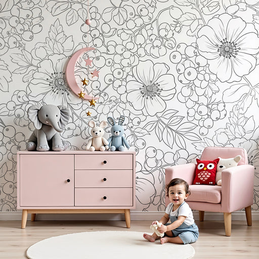 KidsWallTransformér babyrommet med denne barnerom tapetet med delikate blomstermotiver. Hver nøye tegnede blomst bringer en touch av eleganse og mykhet til...