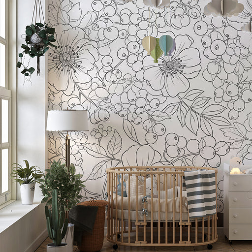 KidsWallTransformér barnerommet med denne tapeten for barn med delikate svart-hvite blomstermotiver. Hver blomst og blad er nøye tegnet for å skape en bero...
