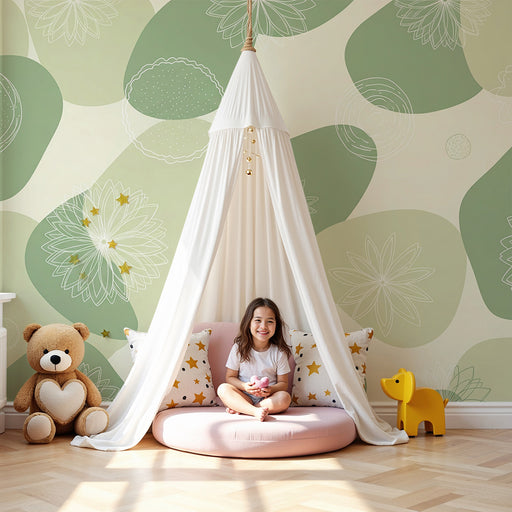 KidsWallRedesign barnerommet til babyen din til et altfor søtt sted med denne tapetet for barnerom med beroligende blomstermotiver. Organiske former og myk...