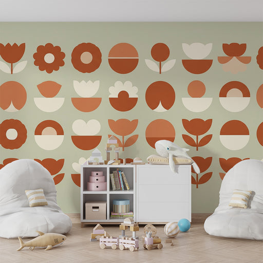 Vis alle detaljerTapet barnerom | Grønne og terrakottafargede blomstermotiver