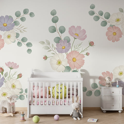 KidsWallForny barnerommet med en søt rede med denne tapetet for barnerom prydet med delikate blomster. Blomstermønstrene, inkludert valmuer og tusenfryd i ...
