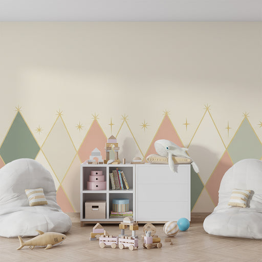 KidsWallTransformér babyrommet til et fortryllende sted med denne barnerom tapet med delikate geometriske mønstre. Rhombuses i pastellfarger av rosa, grønt...