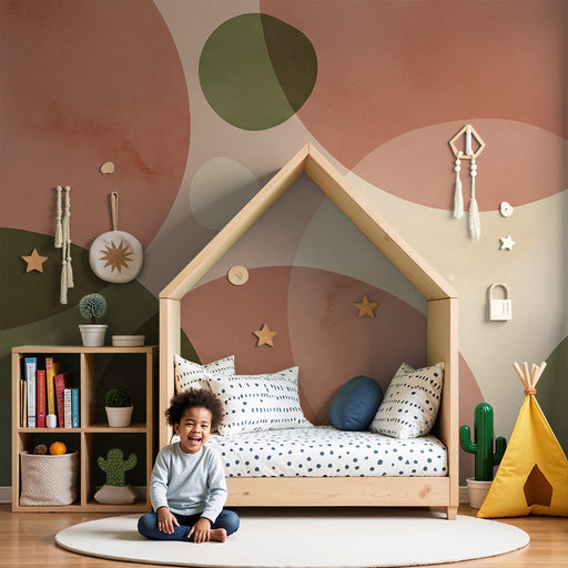 KidsWallTransformér barnerommet til en beroligende og moderne plass med denne barnerom tapet med delikate geometriske mønstre. Sirkler i nyanser av terrako...