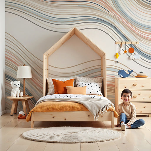 KidsWallTransformér babyrommet med denne tapetet for barnerom med bølgende mønstre som bringer frem følelsen av mykhet og ro. De flytende linjene og de del...
