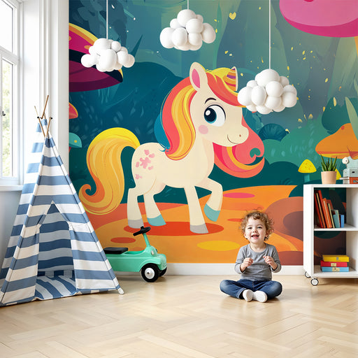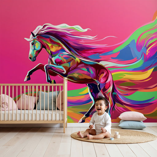 Vis alle detaljerTapet barnerom | Fargerik bevegelig hest