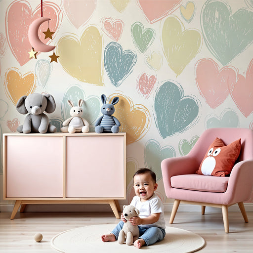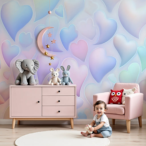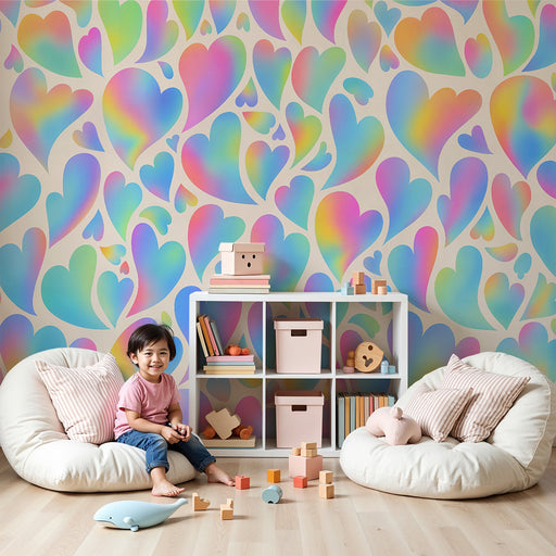 KidsWallTransformere barnets rom med vår pastellregnbuehjerter tapet. Full av myke og glade farger, skaper dette levende designet en livlig og innbydende s...