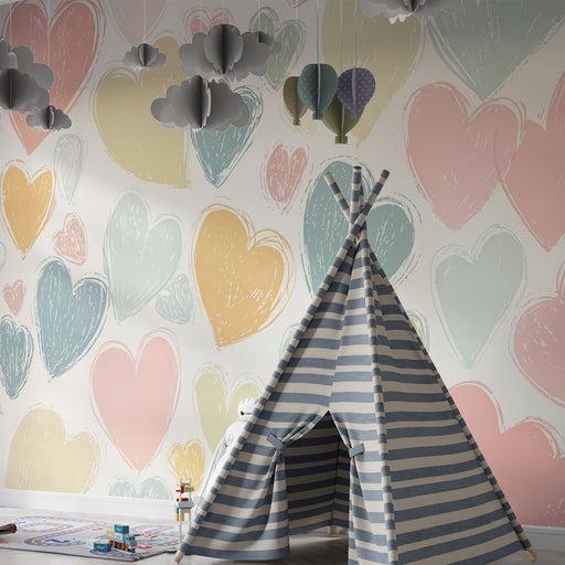 KidsWallLegg til et snev av ømhet og sjarm på barnets rom med vår pastellhjerter tapet. Dette delikate designet har håndtegnede hjerter i en myk palett av ...