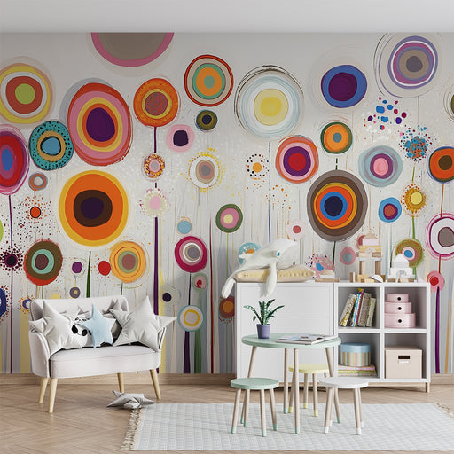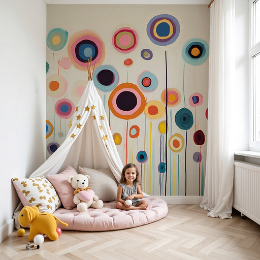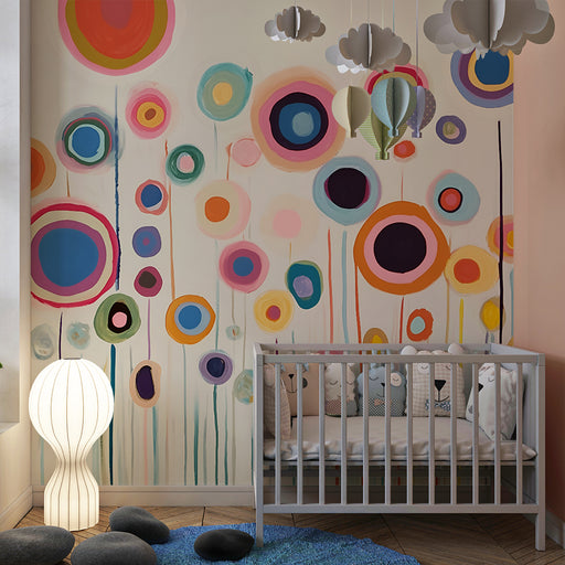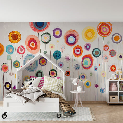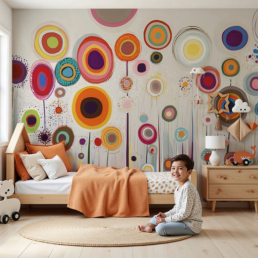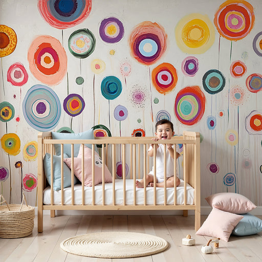 KidsWallLegg til en eksplosjon av farger på barnets rom med vår abstrakte blomster tapet. Denne levende designen har flerfargede sirkler som gir assosiasjo...
