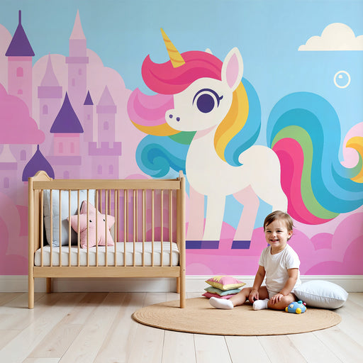 KidsWallTransformez la chambre de votre enfant en un royaume magique avec notre papier peint licorne enchantée. Un design captivant où une licorne aux coul...