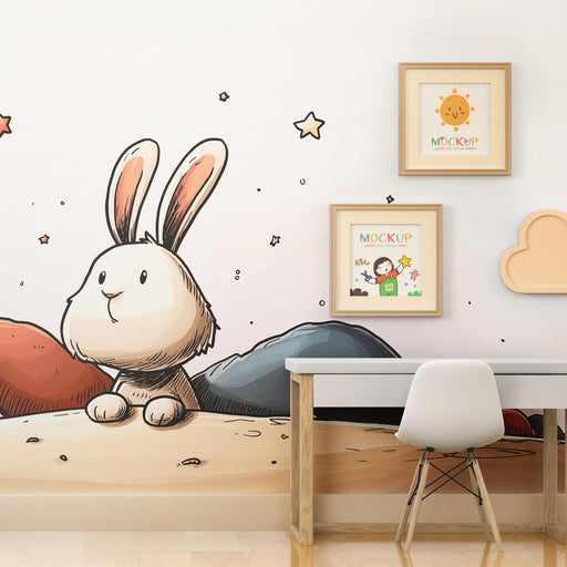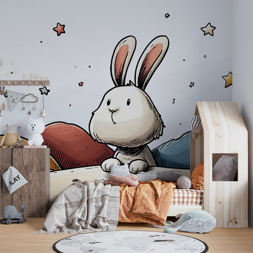 Tapet barnerom | Drømmende kanin og skinnende stjerner