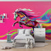 Tapet barnerom | Regnbue hest og fargerike sprut