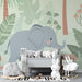 Transformér babyrommet til en ekte naturperle med denne tapeten for barnerom som viser en søt elefant som beveger seg i hjertet av en frodig jungel. Omgitt av majestetiske palmer og delikate tropiske blader, bringer denne elefanten en følelse av mykhet og undring til rommet.