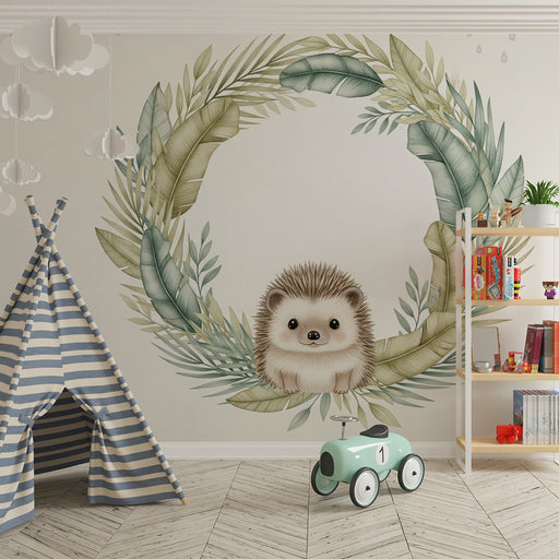 KidsWallTransformér babyrommet til en koselig plass med denne sjarmerende barnetapeten som viser en søt piggsvin omgitt av delikate blad. Dette beroligende...