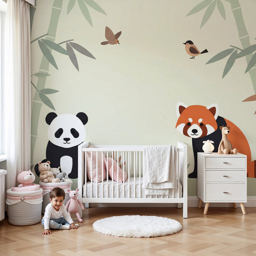 KidsWallTransformér barnets rom til en ekte naturhelligdom med denne barnerom tapet. Dette sjarmerende designet viser en glad panda, en energisk rød panda ...