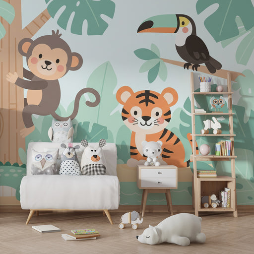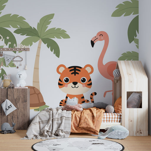 KidsWallTransformér barnets rom til en ekte tropisk paradis med denne barneromtapeten. Med søte dyr som en glad tiger, en smilende skilpadde og en elegant ...