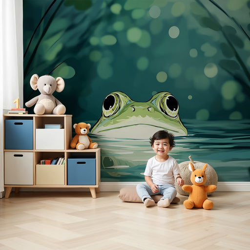 KidsWallDykk inn i den fascinerende naturen med denne tapeten for barn som fremhever en søt frosk som dukker opp fra vannet. I en beroligende setting er de...