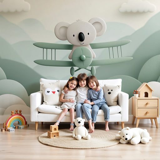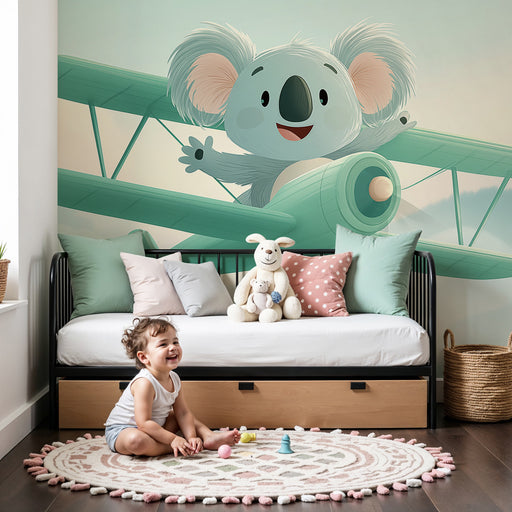 KidsWallGi barnet ditts soverom en touch av eventyr med denne barnetapeten som viser en søt koala som flyr i sitt lille fly. I et mykt og beroligende miljø...