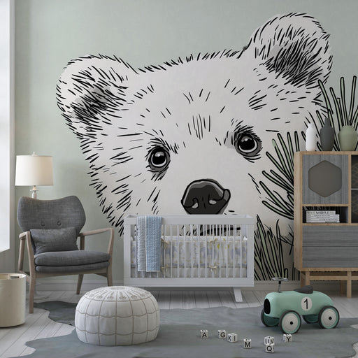 Vis alle detaljerTapet barnerom | Nysgjerrig bjørn i naturen