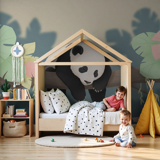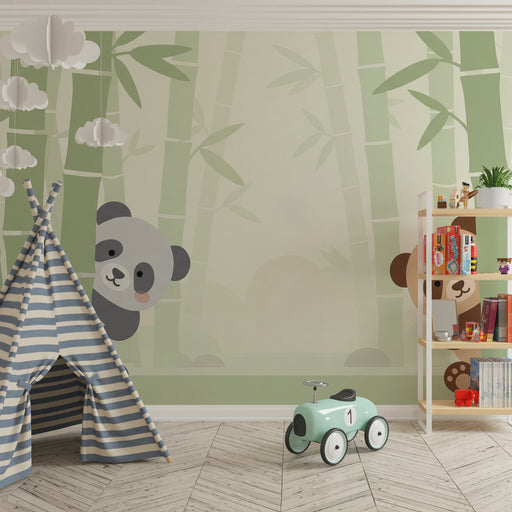 KidsWallDykk inn i en verden av mykhet og eventyr med denne tapetet for barnerom, der to sjarmerende pandaer gjemmer seg blant bambus. Dette fortryllende d...