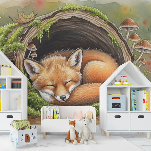 Vis alle detaljerTapet barnerom | Sovende rev i hullet sitt