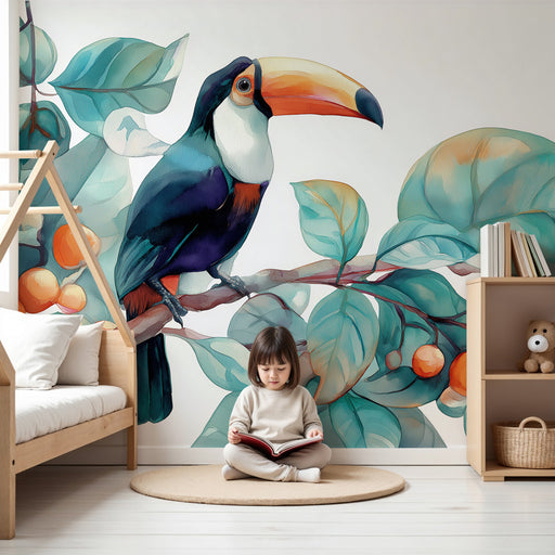 KidsWallDykk barnet ditt ned i en levende verden med denne tapetet for barn som viser en majestetisk tukan sittende på en gren. Omgitt av frodige blader og...