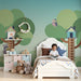 Trærne med myke former og rolige grønntoner skaper en fredfull stemning, perfekt for et rom til både avslapning og kreativitet. Hver eneste detalj, fra hyttene til dyrene, er designet for å bringe en magisk følelse til barnets soverom. Pastellfargene gir et ekstra snev av mykhet og gjør universet enda mer innbydende.