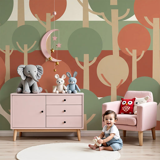 KidsWallTransformér babyrommet til en glad og innbydende plass med denne tapetet for barnerommet med stiliserte tretrekk. De geometriske formene og de myke...
