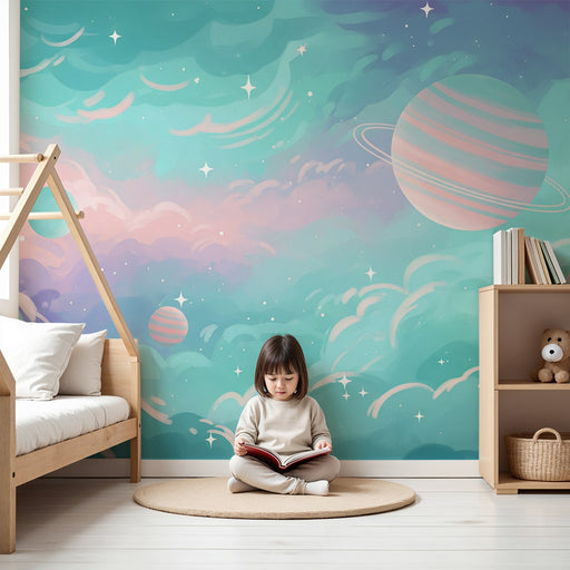 KidsWallEmbarquez votre enfant pour une aventure intergalactique avec ce tapet for barnerom illustrant un univers fascinant peuplé de planètes vibrantes. D...