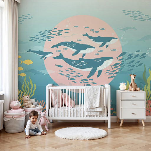 KidsWallDykk inn i en fascinerende undervannsverden med denne tapetet for barn som fremkaller skjønnheten i havene. I midten av denne beroligende dekorasjo...