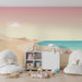 Forvandle barnets rom til et ekte paradis med denne barnerom tapet som illustrerer en sjarmerende skilpadde som går på en gyllen strand. Denne beroligende dekoren bringer frem solfylte dager og eventyr ved sjøen, perfekt for å stimulere barnas fantasi.