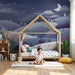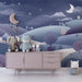 Ideell for soverommet eller avslapningsområdet, forvandler denne pastellfarget tapet ditt hjem til en helligdom av ro. De skinnende stjernene og månen vokter over dette fortryllende landskapet for en eventyrstemning.