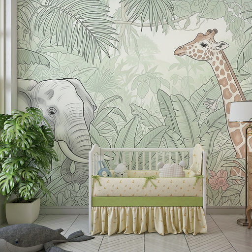 KidsWallPrzekształć pokój swojego dziecka w prawdziwe safari za pomocą tego tapety dla dzieci, przedstawiającej słonia i żyrafę w sercu pulsującej dżungli....