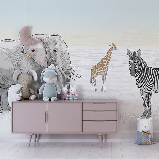 KidsWallPrzekształć pokój swojego dziecka w prawdziwą safari za pomocą tego tapety dla dzieci, na której znajdują się majestatyczne zwierzęta sawanny. Potę...