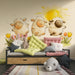 Dodaj odrobinę radości do pokoju swojego dziecka tym tapetą z owcami, przedstawiającą trzy skaczące owce pośrodku kolorowych tulipanów pod jasnym słońcem. Doskonałe do stworzenia delikatnej i zabawnej atmosfery, ten żywy i zabawny wzór ucieszy najmłodszych.
