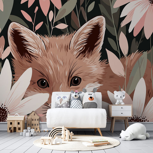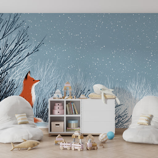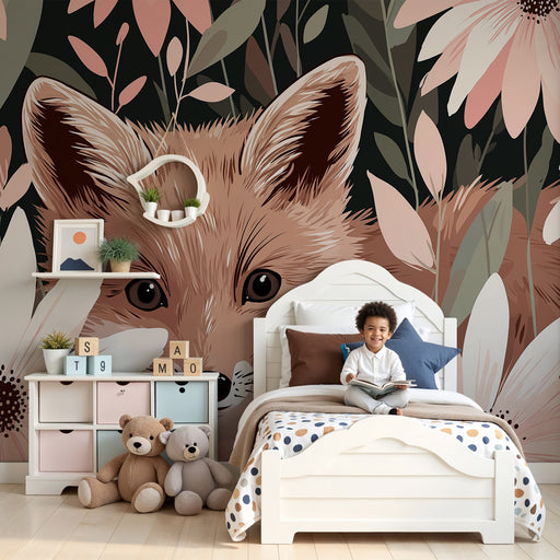Podaruj swojemu dziecku magiczny i kojący świat dzięki tej tapety dla dzieci, gdzie urocze lisy i króliki odpoczywają spokojnie na puszystych chmurach. Ten zaczarowany świat skąpany w złotych księżycach i migoczących gwiazdach zachęca do marzeń i dobrego samopoczucia, tworząc idealną atmosferę dla miękkiego i uspokajającego pokoju.