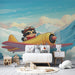 Wyrusz w fascynującą przygodę z tą tapetą dla dzieci, na której widnieje uroczy pilotujący samolot szop przelatujący nad majestatycznymi górami. Jego mały żółty samolot przemierza chmury i zatacza się nad ośnieżonymi szczytami, tworząc fascynującą scenerię, która rozbudzi wyobraźnię Twojego dziecka.