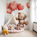 Przekształć pokój swojego dziecka w magiczne miejsce za pomocą naszego tapety dla dzieci z latającym misiem. Ten uroczy design przedstawia uroczego misia trzymającego balony w kształcie serca, unoszącego się między chmurami.