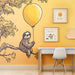 Dodaj odrobinę niewinności i delikatności do pokoju swojego dziecka za pomocą tego tapety dla dzieci, przedstawiającej uroczego leniwca wiszącego na gałęzi, trzymającego jasnożółty balon. Ten zabawny motyw zaprasza do marzeń i odprężenia, tworząc ciepłe i kojące środowisko.